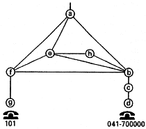 Onderstaande figuur toont de meest eenvoudige vorm van een telefoonnetwerk