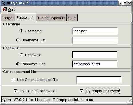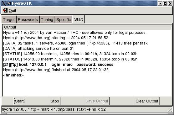 (3) Hydra start and output [0x06] The Art of Downloading: Source and Binaries For your pleasure, Hydra comes as source and binary release. 1. The source code of Hydra: hydra-5.4-src.tar.gz (compiles on all UNIX based platforms - even MacOS X, Cygwin on Windows, ARM-Linux, etc.) 2. The Win32/Cywin binary release: hydra-5.4-win.zip (everything you need to run hydra on win32 platforms is in this zip file) 4. The ARM binary release: hydra-4.5-arm.tar.gz (created by tick (at) thc (dot) org - everything except SAP R/3 is supported, runs on all Handhelds with ARM processors running Linux, e.g. iPaq, Zaurus, etc.) 3. The Palm binary release: hydra-4.6-palm.zip (created by snakebyte (at) gmx (dot) de - does not support all attack modules yet) [NOTE: the Palm release has got a different source tree. Therefore not all] [ modules are supported, and updates are not very often. ] Comments and suggestions are welcome. Yours sincerly, van Hauser The Hackers Choice http://www.thc.org