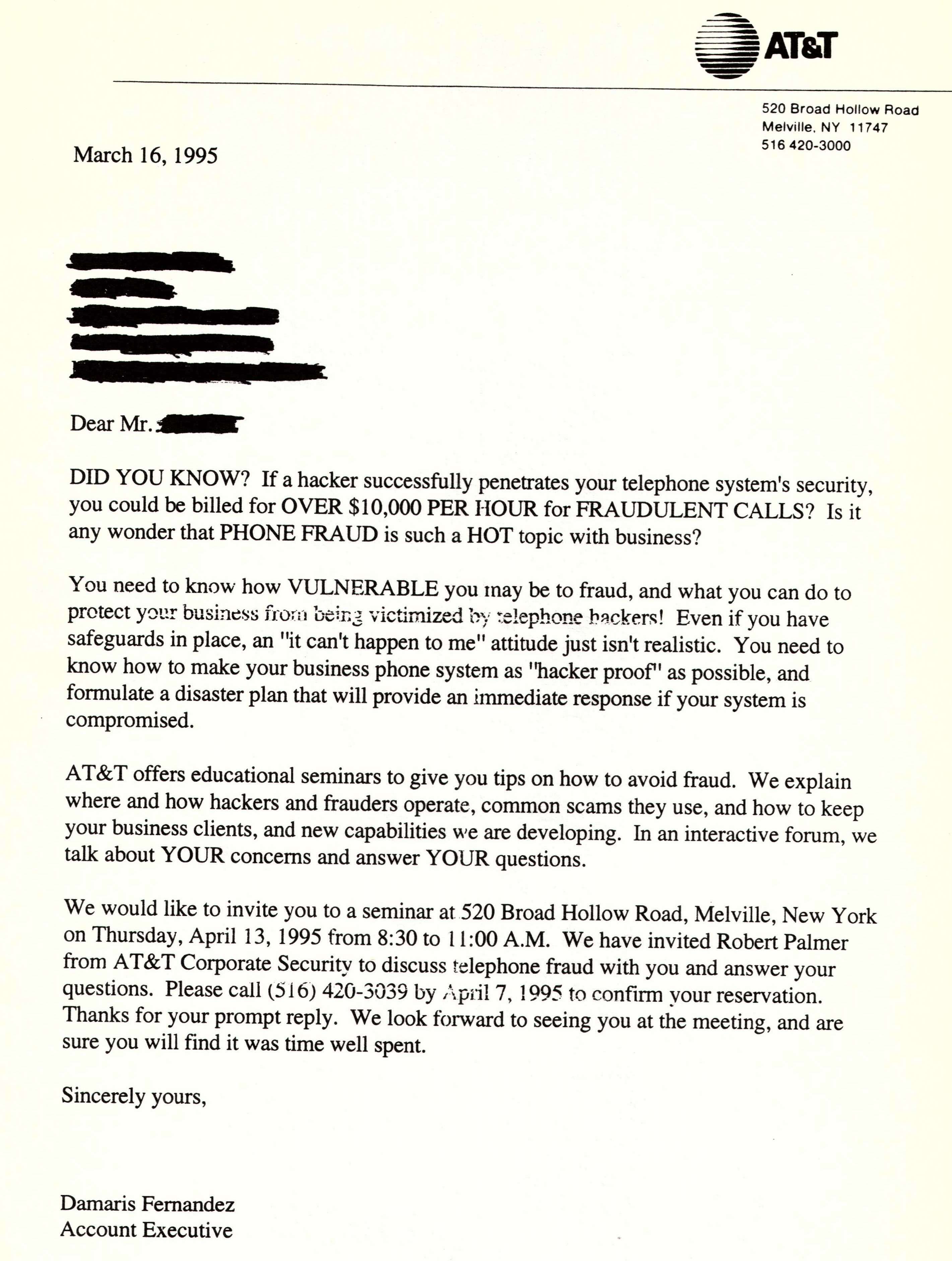 This is the quintessential "lean on customer" letter from AT&T that is intended to put the fear of God into them so that they'll comply. After all, it would be a shame if something were to happen to this nice business of theirs, wouldn't it?