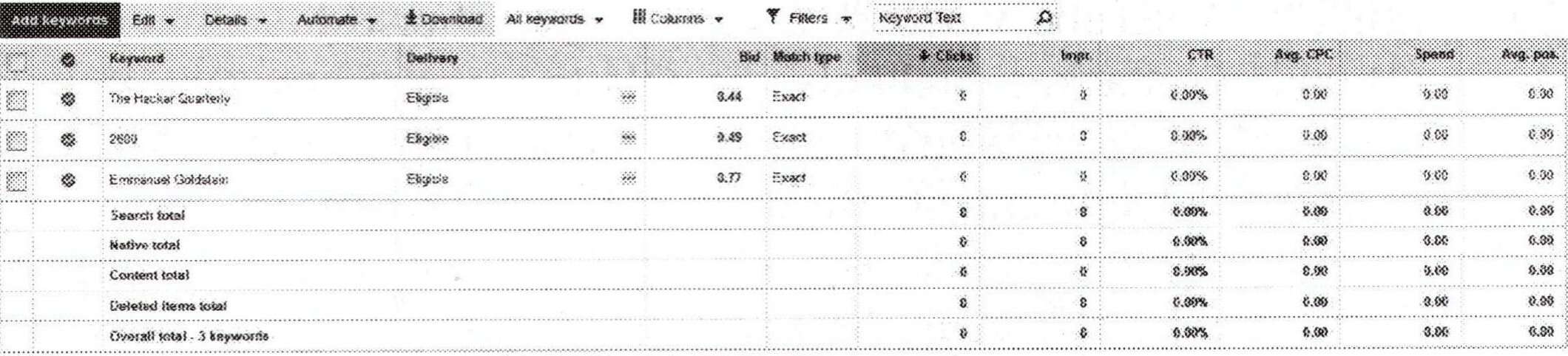 Bing Ads has some advantages price-wise, in addition to being the default search engine in Internet Explorer. (There are plenty of tutorials online to show you how to use both Bing Ads and Google AdWords.) Non-tech-savvy users are more likely not to change the default search engine. They are also more likely to click on search engine advertisements that look similar to legitimate search results. In this case, we do not really care about getting the law enforcement agents or police officers to click on the ads, so much as we want our ads shown when these law enforcement agencies search for our advertisements. These are called "impressions" in online advertising speak.