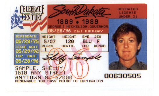 South Dakota ID (Circa 1992, Minor's DL Shown)