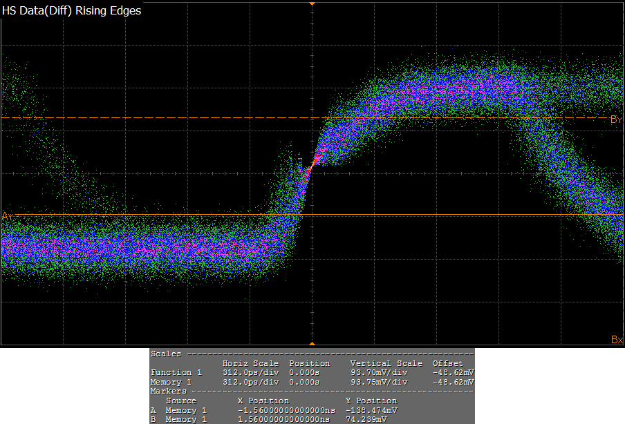 ![]() | 0 | 1 | 1.4.11 HS Clock TX 20%-80% Rise Time (tR) | 358ps | 6.2 % | 100ps <= VALUE <= ComplianceTranTimeMaxs |