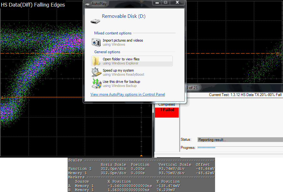 ![]() | 1 | 1 | 1.4.12 HS Clock TX 20%-80% Fall Time (tF) | 380ps | -1.8 % | 100ps <= VALUE <= ComplianceTranTimeMaxs |