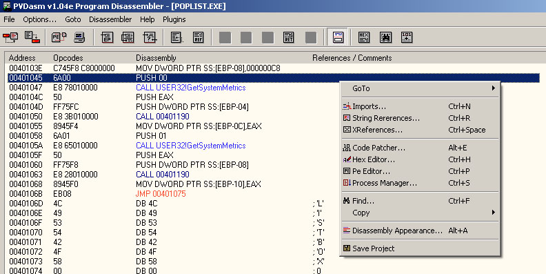 Download the latest PVDasm v1.7a 32Bit Disassembler. (Updated 21.2.2010)