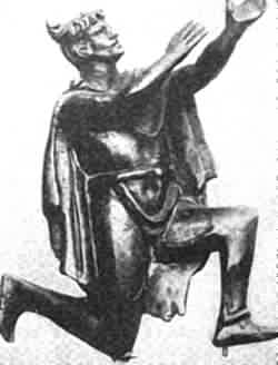 Left: The famous "Praying German" - a Roman statue of a German tribesman, now in the Bibliotheque Nationale, Paris. It shows very clearly the Nordic sub-racial characteristics of the Germans who fought the Romans. Right: a Roman bust of Hermann Cheruscer: the German prince who defeated Rome.