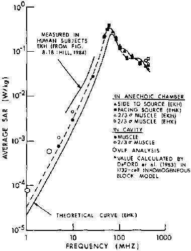 Experimental data from the literature on the average SAR, SAR distributions, and the temperature-rise distributions on some test animals, human subjects, and phantom models, along with some calculated data, are shown in Figures 8.1-8.47 and Tables 8.1-8.4. References are given in the figure captions and table headings.