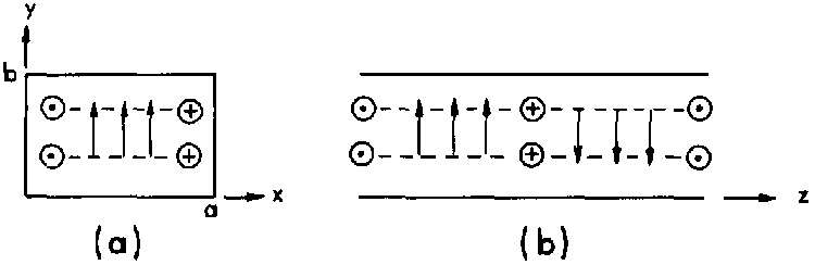 3.21. Cross-sectional views of the electric- and magnetic-field lines in the TEM mode for coaxial cable and twin lead