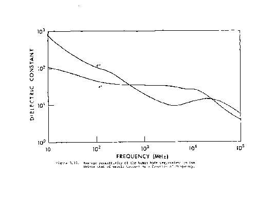 3.35. Average permittivity of the human body (equivalent to two-thirds that of muscle tissue) as a function of frequency