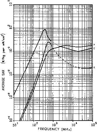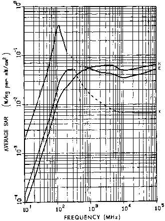 11.4. Power densities that limit human whole-body SAR to 0.4 W/kg for a 1.8-m, 70-kg person