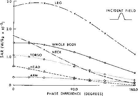 6.3. Calculated planewave average SAR in a prolate spheroidal model of an average man for three polarizations