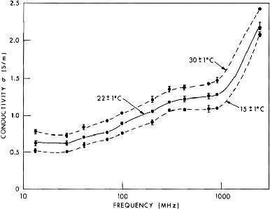 4.17. Measured values of relative dielectric constant and conductivity of in vivo canine fat tissue at 37° C