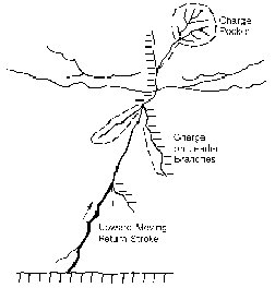 A lightning discharge, or flash, is initiated by an upward or downward traveling spark known as a step leader. When this step leader reaches the ground, a return stroke is initiated at the ground surface which moves back up the ionized channel left by the step leader, resulting in current conduction and the discharge of pockets of energy as shown in Figure 1. Since different clouds can contain varying amounts of charge, lightning strokes vary in intensity with a distribution of current as shown in Figure 2.