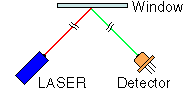 that "grazes" a LASER beam at an angle to the plane of the glass (e.g.,