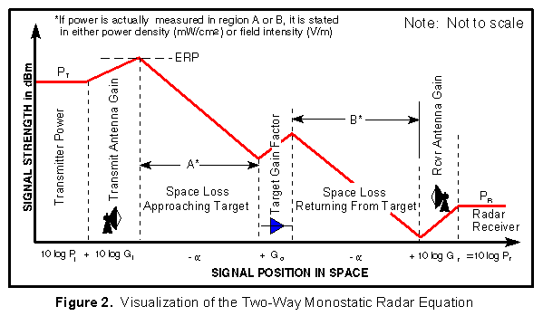In this section the radar equation is derived from the one-way equation (transmitter to receiver) which is then extended to the two-way radar equation. The following is a summary of the important equations to be derived here: