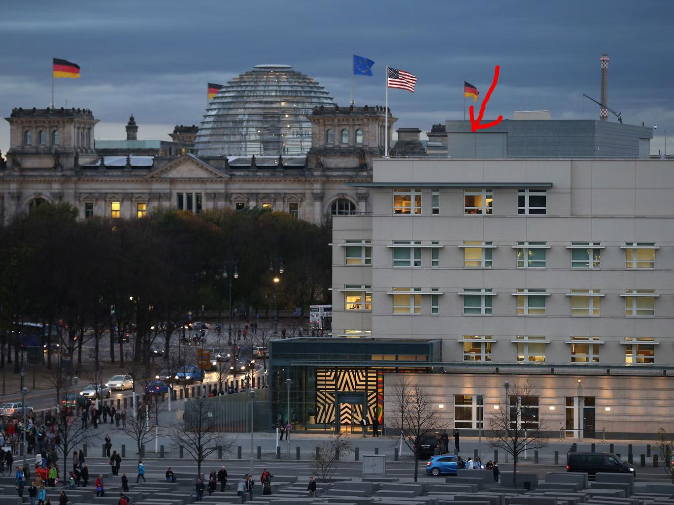 Shown above is the NSA's Special Collection Service (F6) EINSTEIN/CASTANET hardware. They're located on the top floor or roof of the U.S. embassy in Berlin, and elsewhere, operating under the STATEROOM program. This is not normally a transmitting system, though it can be used for RF illumination, RF flooding, active fault injection, lulz, etc. when operating in "close access" operations.