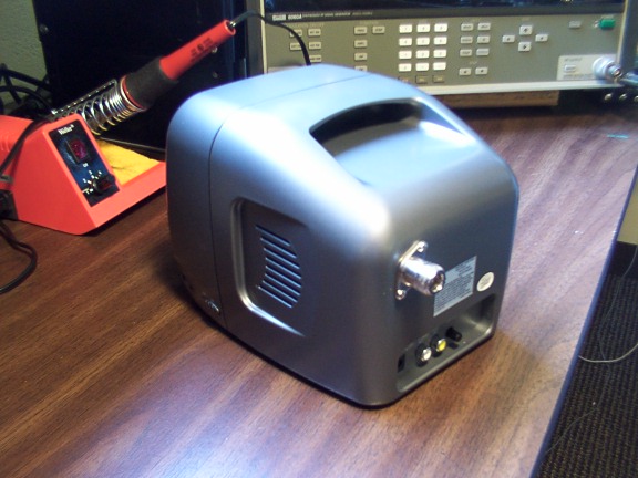 This is the rear panel of the monitor/receiver showing the type N connector mounted and ready for use. I chose a connector with only two mounting tabs as it fit better on the curved surface of the rear panel. It's available from Mouser Electronics for less than $3.