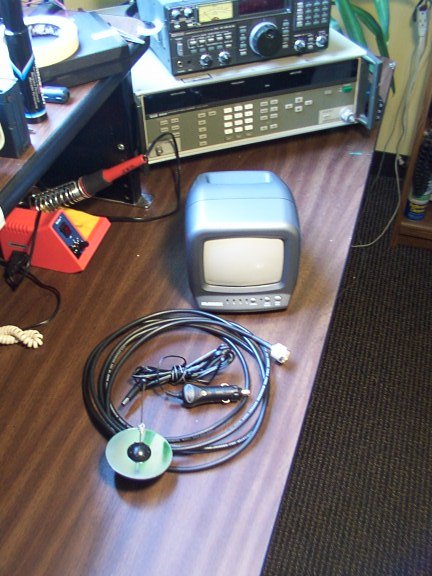 Here's the complete kit, ready for a vigorous and stimulating session of Warviewing: the receiver/monitor, a magnetic mount 2.4GHz antenna and a cigarette lighter power cord. That's all there is to it!