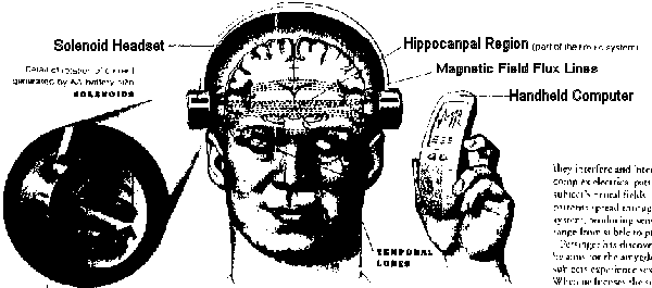 Ilere's how it might work: A hand-held computer programs the pattern at which the fields will fluctuate. The impulses move through the temporal lobe and penetrate deep into the brain, where they interfere and interact with the complex electrical patterns of the subject's neural fields. The new patterns spread through the limbic system, producing sensations that range from subtle to profound.