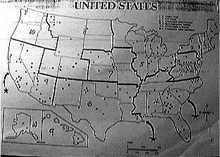 A U.S map which details the locations of detention centers, MJTF Police Bases and U.N. Combat Groups. The Picture of this map came from, "70th Week Magazine" P.O. Box 771, Gladwater, Tx. 75647. This is a 1994 photo.