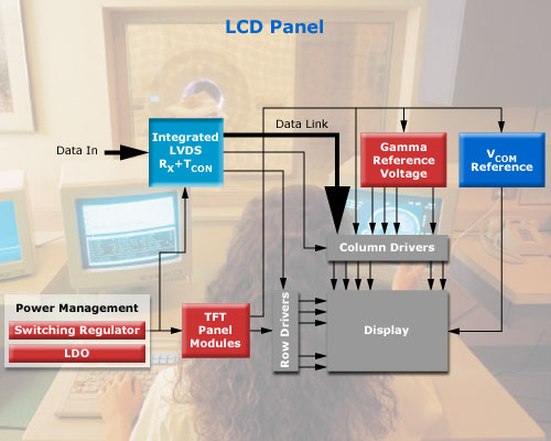 * Panel timing controller - with LVDS technology, these controllers have programmable outputs with customized control for standard or in-house column drivers and row drivers.