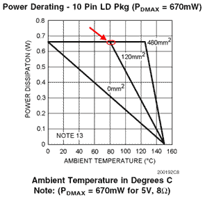 For example: You want to determine the maximum ambient operating temperature for our LM4890, 5V, BTL amplifier.