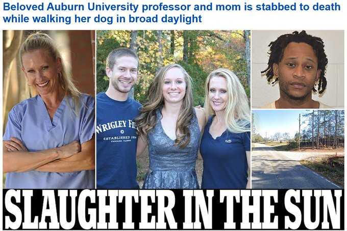 - Beloved Auburn University Professor Stabbed to Death While Walking Her Dog with Suspect Facing Death Penalty "Beloved veterinarian Dr. Julie Gard Schnuelle, 59, was found dead in a wooded area of Kiesel Park in Auburn, Alabama on Saturday afternoon. Schnuelle's injuries were consistent with an assault caused by a sharp object believed to likely have been a knife, Auburn police said in a statement obtained by Daily Mail. Her dog was unharmed."