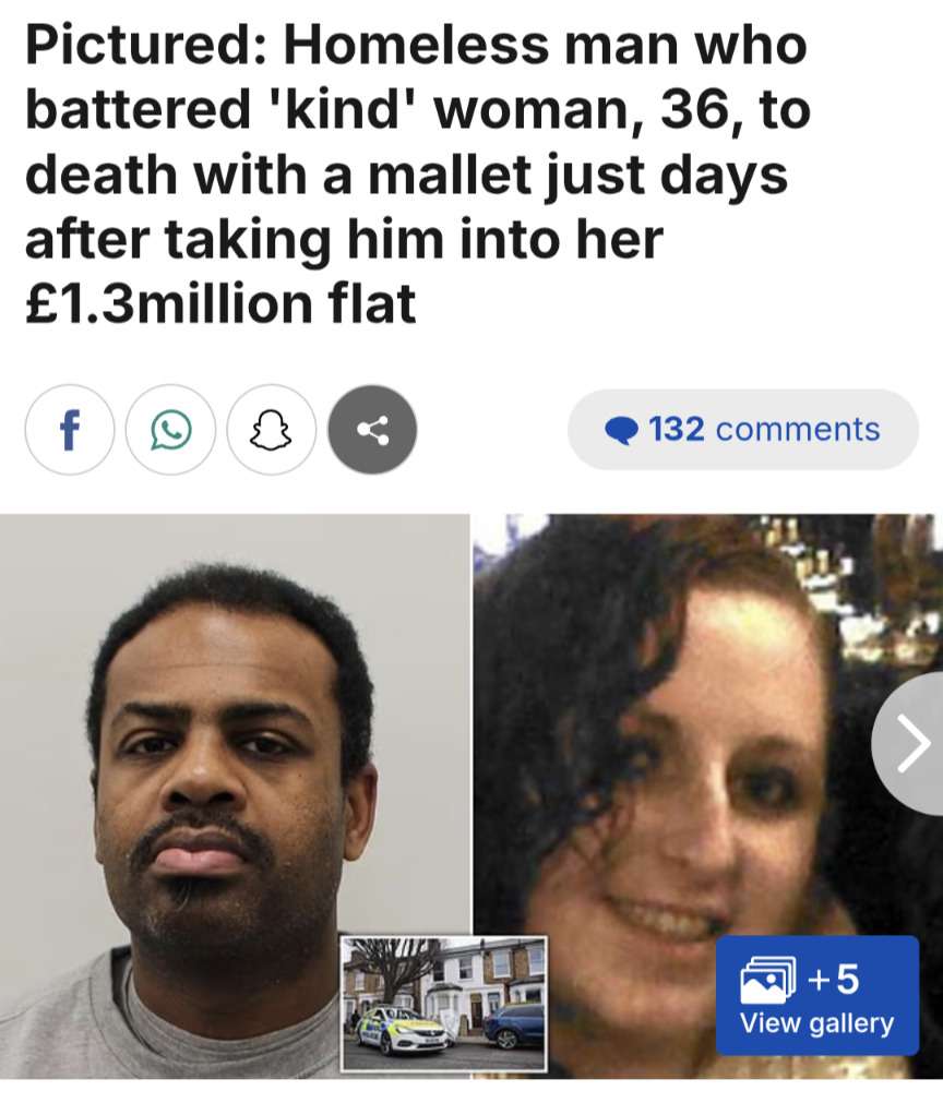 - Homeless Man Guilty of Murdering Woman in Her Flat "Apapale Adoum, 39, is facing a life sentence after he admitted murdering Victoria Adams, 36, at her home in Hammersmith, west London, on February 9."