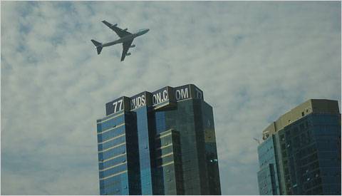 through the city. Flying in as low as
