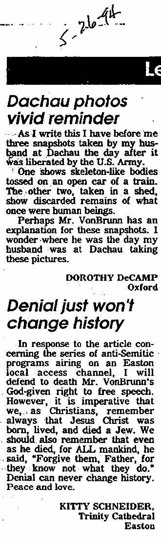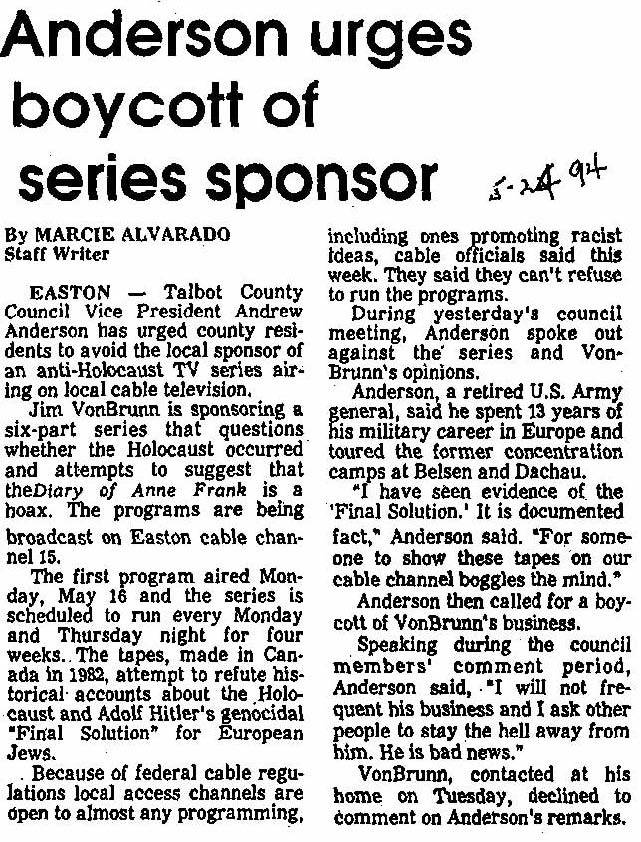 24 May 1994 OPEN LETTER RE: COUNTY COUCIL QUOTES APPEARING IN EASTON STAR-DEMOCRAT (5-24-94)