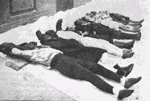 Father Gapon resolved to take the matter directly to the Tsar. On the following Sunday thousands of Petersberg's workmen and their families turned out to participate in this appeal to the "little father". The procession was entirely orderly and peaceful and the petitioners carried patriotic banners expressing loyalty to the crown. At the palace gate the procession was met by a flaming volley of rifle fire. Hundreds of workmen and members of their families were slaughtered. This was "Bloody Sunday", certainly one of the blackest days in Tsarist history.