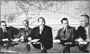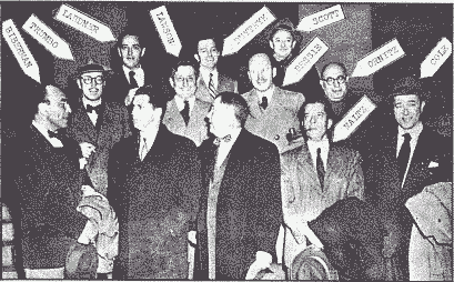 ![]() | Left to right: W. W. Waymack, L. L. Straus*, David Lilienthal*, R. F. Bacher*, Sumner Pike. In 1945 Harry Truman removed atomic energy from military authority and placed it under this Jew-dominated board, headed by David Lilienthal. Lilienthal had a pro-communist record. |
