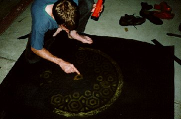 Rubbing, with gold oil pastel on photographer's backdrop paper