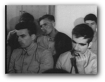 In June, we were taken to the Club for yet another film. Unlike the usual fare of feature films of the war movie, labor hero genre, we were shown two short subjects. One was a film about the DPRK soccer team's visit to the play-offs in London. The other was about a US service man's body being returned to the UN side at Panmunjom by the DPRK. Two different subjects, but one common action united the two films.