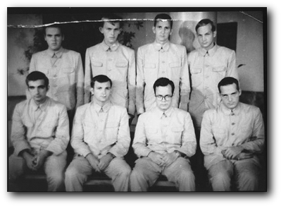 L to R Top row: Ron Berens, Harry Iredale, "Scabby" Scarborough, Chuck Law Bottom row: "Eddie" Bland, Don Peppard, Jimmy Layton, Chief "Goldie" Goldman