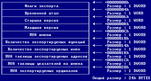Если все хорошо, тогда идем дальше. Нам нужен RVA таблицы экспортов. Как вы можете видеть, он находится по смещению 78h в заголовке PE - вот мы его и получили. Но как вы знаете, RVA (относительный виртуальный адрес), согласно своему имени, относительно определенного смещения, в данном случае - базы образа ядра. Все очень просто: просто добавьте смещение ядра к найденному значению. Хорошо. Теперь мы находимся в таблице экспорта :).