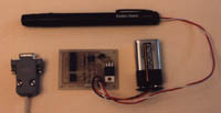 Now you are ready to start attaching the external components. These include the laser pointer, photo-transistor, battery connector, switch and the DB-9 connector. I will leave it up to you as to how you want to house the project, but I suggest that you use a zippy box so that you can mount the photo-transistor and switch. To mount the photo-transistor, you can simply drill a snug hole in the side of the zippy box and use that to secure the photo- transistor. Alternatively a block of plastic or wood, with a hole drilled in it for the photo- transistor, can be attached to the top of the zippy box. The advantage of the block is that it shields the photo-transistor from ambient light. Take particular care with the orientation of the photo-transistor when clipping the pins and soldering wires to it.