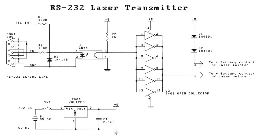 PC, and the 74LS05 is used to drive the laser diode inside the laser pointer.