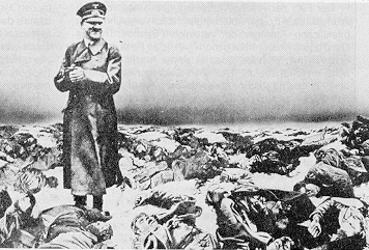 Propaganda photograph shows Hitler gleefully rubbing his hands, inspecting